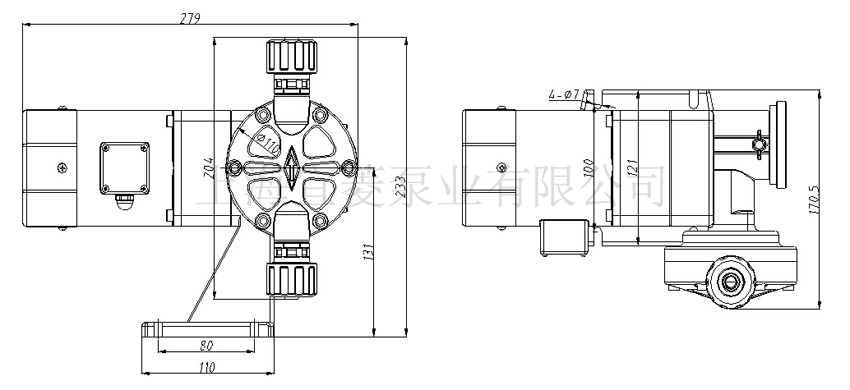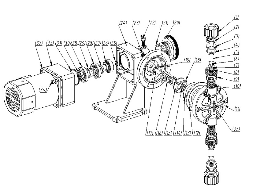 型号 | 流量 (l/h) | 压力(Mpa) | 行程(mm) | 冲次 | 隔膜直径 (mm) | 电机功率(W) | 进出口径(DN) |