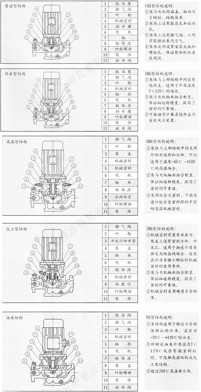 2、IRG(GRG)型立式热水(高温)循环管道泵广泛适用于:能源、冶金、化工、纺织、造纸、以及宾馆饭店等锅炉高温热水增压循环输送及城市采暖系统循环用泵,IRG型使用温度T<120℃,GRG型使用温度T<240℃。