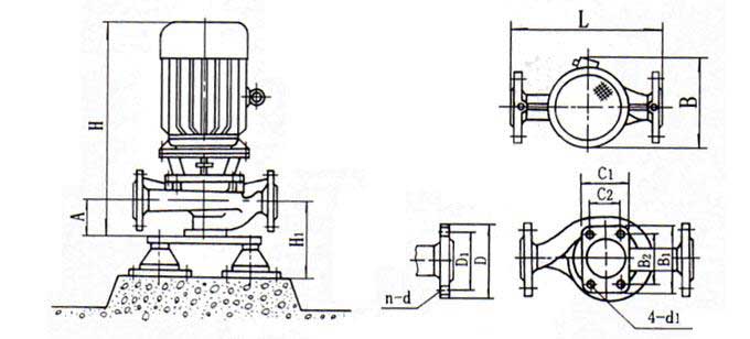 1、管道离心泵为立式结构,进出口口径相同,且位于同一中心线上,可像阀门一样安装于管路之中,外形紧凑美观,占地面积小,建筑投入低,如加上防护罩则可置于户外使用。