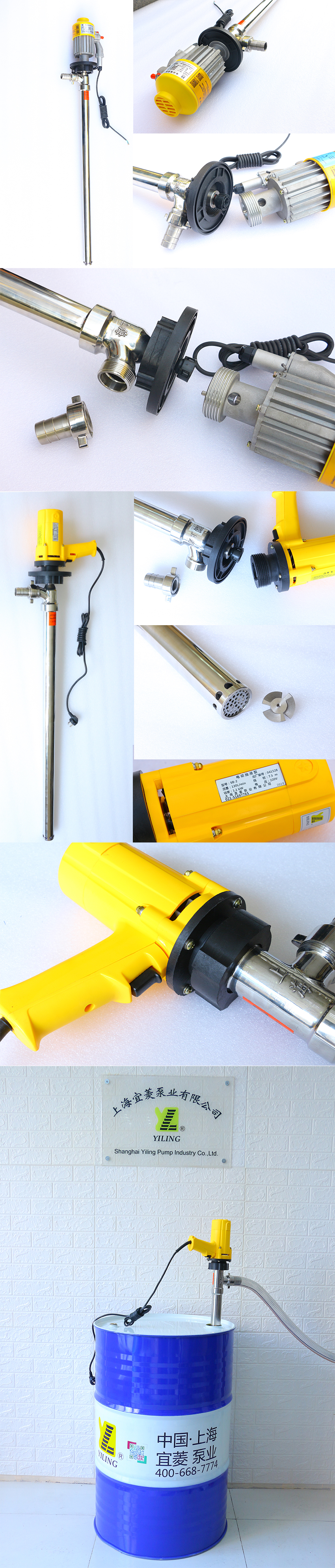 根据所输送的液体性质,泵体沾湿部分材料可选铝合金、优质304不锈钢、316L不锈钢、PP塑料、RPP增强聚丙烯、PVDF. PTFE等组成。驱动电机配备单相标准电机,无极调速电机,无刷电机,防爆电机,防爆气动马达,高转速电机等多种选择。电机塑料外壳采用黄色优质PC聚碳合成塑料(德国黄),根据输送介质粘度、比重、腐蚀性程度不同所配置泵体材质和电机各有不同,产品可分为五大系列上百种型号,该系列泵可按防爆区域和非防爆区域选用,如在易燃易爆场合使用,可选用我公司生产的防爆型电动抽液泵((SB-3型、SB-3-1型、SB-4型、SB-3-RPP型、SB-3-316L型、YBYB型、YL-EX系列,YL-Al气动马达系列)。使用防爆型电动抽液泵时应按GB38361-2《爆炸环境用防爆电气设备》有关规定并正确使用防爆插头插座。