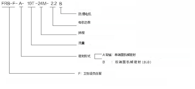 FRB-F-B-G为防爆双密封离心泵,注水密封必须先开冷却水,后起动电机.水压力不得超过0.1Mpa。
