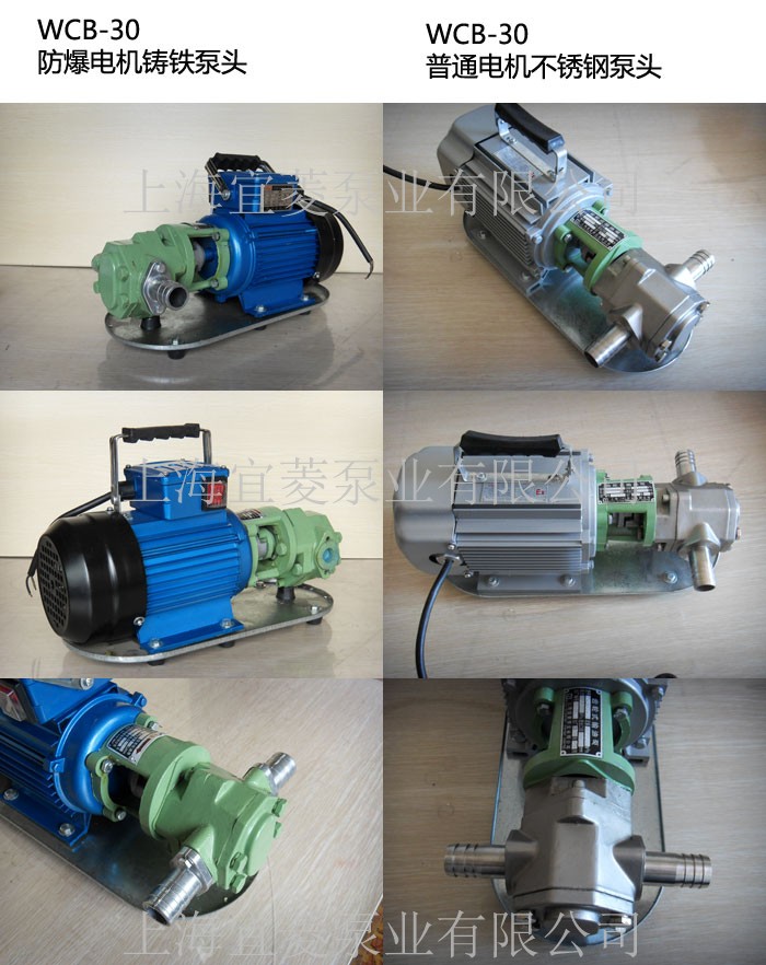 ●WCB型齿轮油泵属于低压力微型手提式节能输油泵,最适用于无动力电源的出售单位油桶抽油,也适用于电厂、电站、变电所(室)及油库输油。稀油润滑系统的稀油转运。如:输送无润滑性的油料、饮料、低腐蚀性的水等,请选用整体不锈钢齿轮泵,索蓝泵业均有生产手提式齿轮油泵。