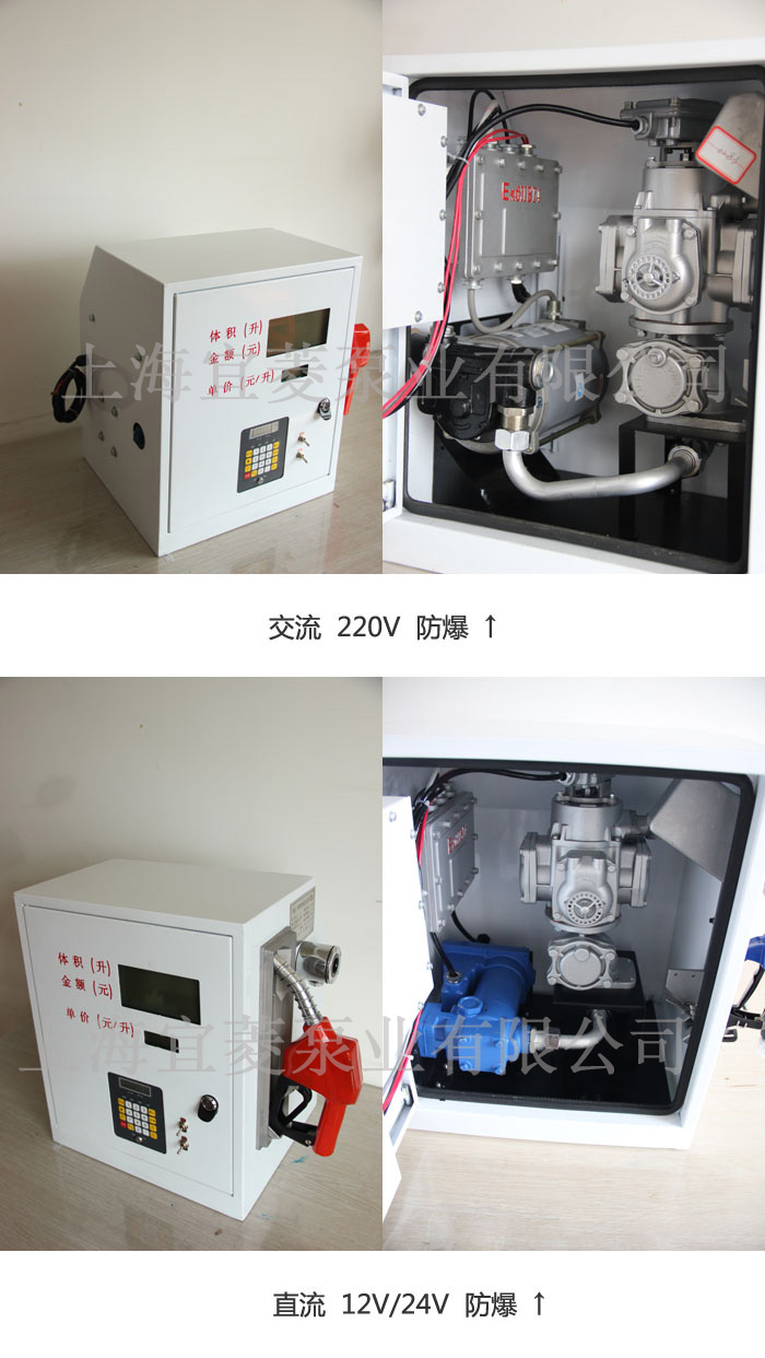 本产品配置直流12V/24V防爆电机,交流220V防爆电机,适合工厂,车队,油车,等场合精确计量加油。